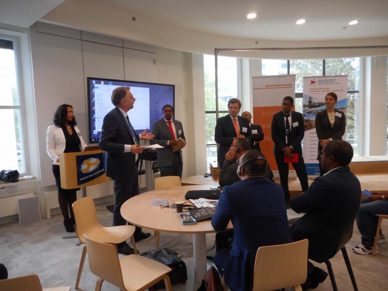 On September 26th 2017 Atlantico Business Development organised the CaboDutch Business Meet on behalf of the Cabo Verde North Chamber of Commerce (BeCV) and the bilateral CaboDutch International Business Chamber. The event took place at the Rotterdam Chamber of Commerce. Some 20 companies and mayors from Cabo Verde met up with some 40 Dutch companies and organisations. Together they explored business opportunities in Cabo Verde's northern islands Boa Vista, São Vicente, São Nicolau and Santo Antão. Options were discussed in both plenary sesions and individual B2Bs and were found in the maritime, agribusiness, water, renewable energy production and tourism sectors. The CaboDutch Business Meet was sponsored by NL Enterprise Agency, Lopes Liquors, Boundless World Solutions, the Chamber of Commerce and Atlantico Business Development. An interview (in Portuguese) with Arnout Nuijt about the mission by Osvaldo de Brito of Letra das Ilhas can be found here.
